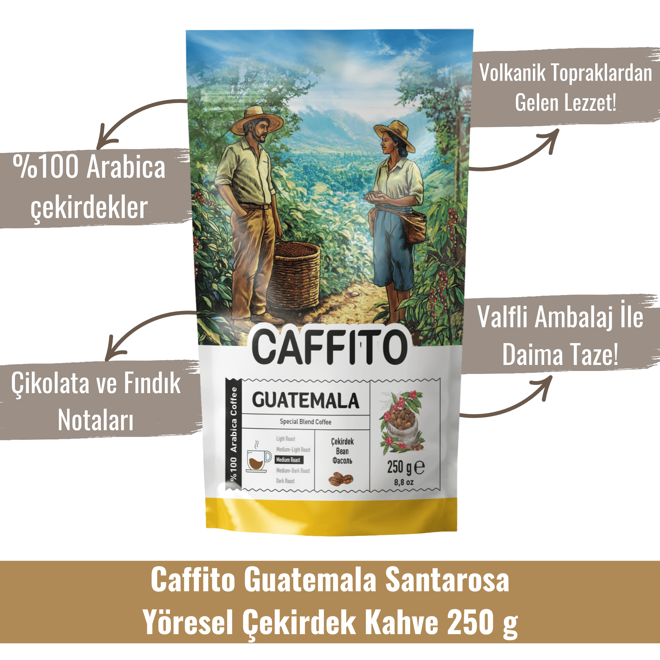 Caffito Guatemala Santarosa, çok yönlü yapısıyla birçok demleme yöntemine mükemmel uyum sağlar. Özellikle Filtre Kahve Makinesi, V60 ve French Press ile demlendiğinde çikolata ve fındık notalarını en belirgin şekilde ortaya çıkarır. Dengeli yapısı sayesinde günün her saati için ideal bir seçimdir.